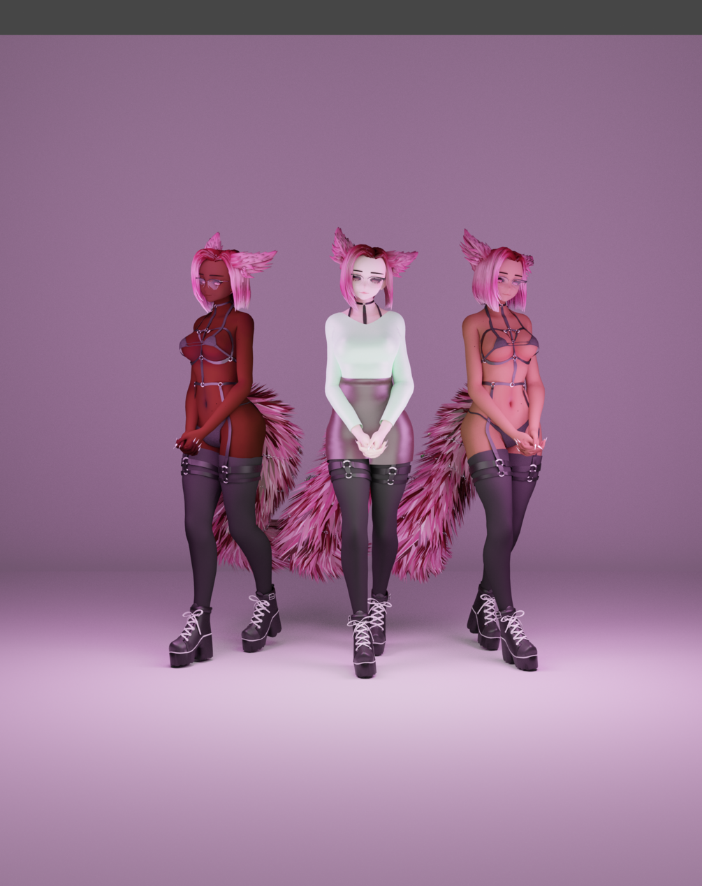 vrchat, avatar, assets, fox girl, teacher, tail, ears, harness, shoes, skin, textures, animations, vr, vrc
