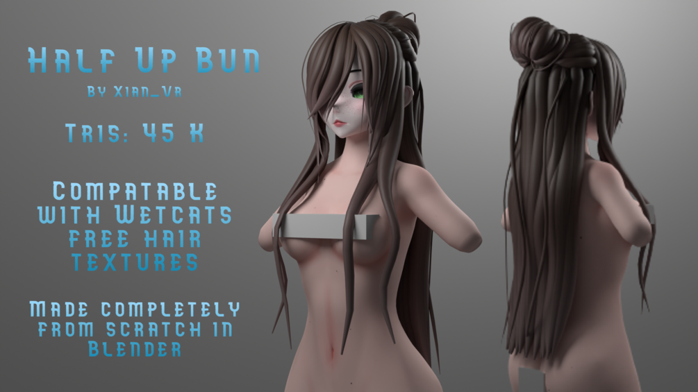 Cute long hair with a half up bun and side swept bangs. Made from scratch in blender, rigged and ready to go!